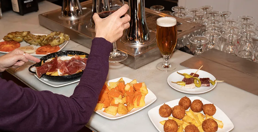 In the heart of Madrid de los Austrias, with its entrance on Cava de San Miguel, we have opened La Tasca del Museo. This unique space recreates the cozy atmosphere of traditional Spanish taverns, where ham and Madrid-style tapas take center stage.